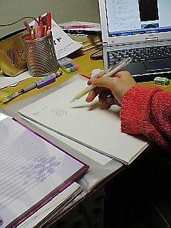 なるべく具体的な絵にするために、雑誌やパソコンなどの資料をみながら作業を進めているのですが、
