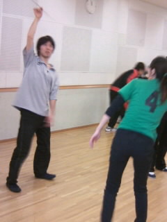 バトンは女の子だけのものじゃありません。 メリーメイカー男性陣は、手先が器用な人間が多く、フィンガーができた中村・梅田は、さらにターンに挑戦…! アクロバティックです。 でも、難しい!