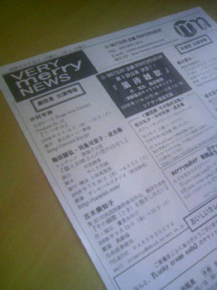 皆さん、「ベリーメリーニュース」って知ってますか? merrymakerの公演パンフレットに挟んである、劇団から皆さんにお届けする情報です。 今回は、いつもにましてたくさんの情報を掲載する予定です。ご来場の際には、是非、ご覧になってください。 ちょっとお得な情報も載っていますよ。 よろしくお願いします!