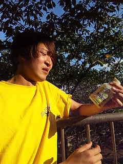 そして、見事一等賞にゴールした阿久津くん(通称あっくん、merrymaker初参加!)には、作演出の隈部さんからジュースのご褒美がありましたとさ♪♪