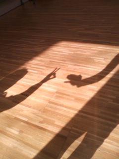 これは昨日の稽古前の模様。 さぁて、このシルエットは誰でしょうか(⌒〜⌒)?