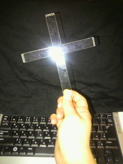 この十字架、プラスチックでできているから、照明に当たると反射してめちゃめちゃ綺麗でした。