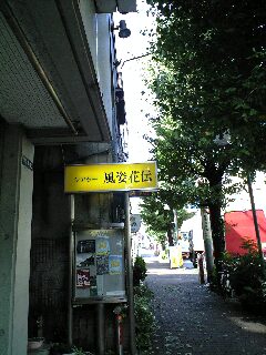 写真は、暴風吹き荒れながらも晴れている劇場入り口。