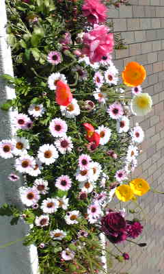 目白駅前にポピーがゆらゆら元気よく揺れてました。